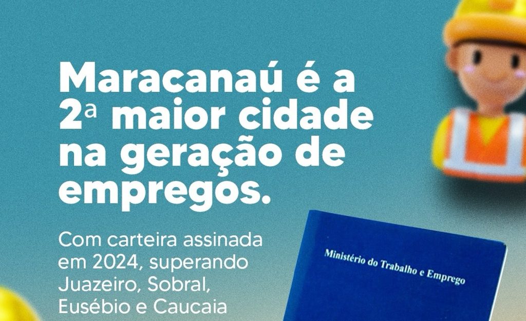 Trabalho e Empreendedorismo Maracanaú é a 2ª maior cidade na geração de empregos com carteira assinada em 2024, superando Juazeiro, Sobral, Eusébio e Caucaia