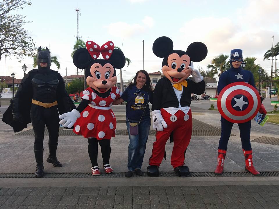A ação contou com a participação da humorista Mulher Bat Gut, além dos personagens animados que alegraram a blitz. (Artur Filho)