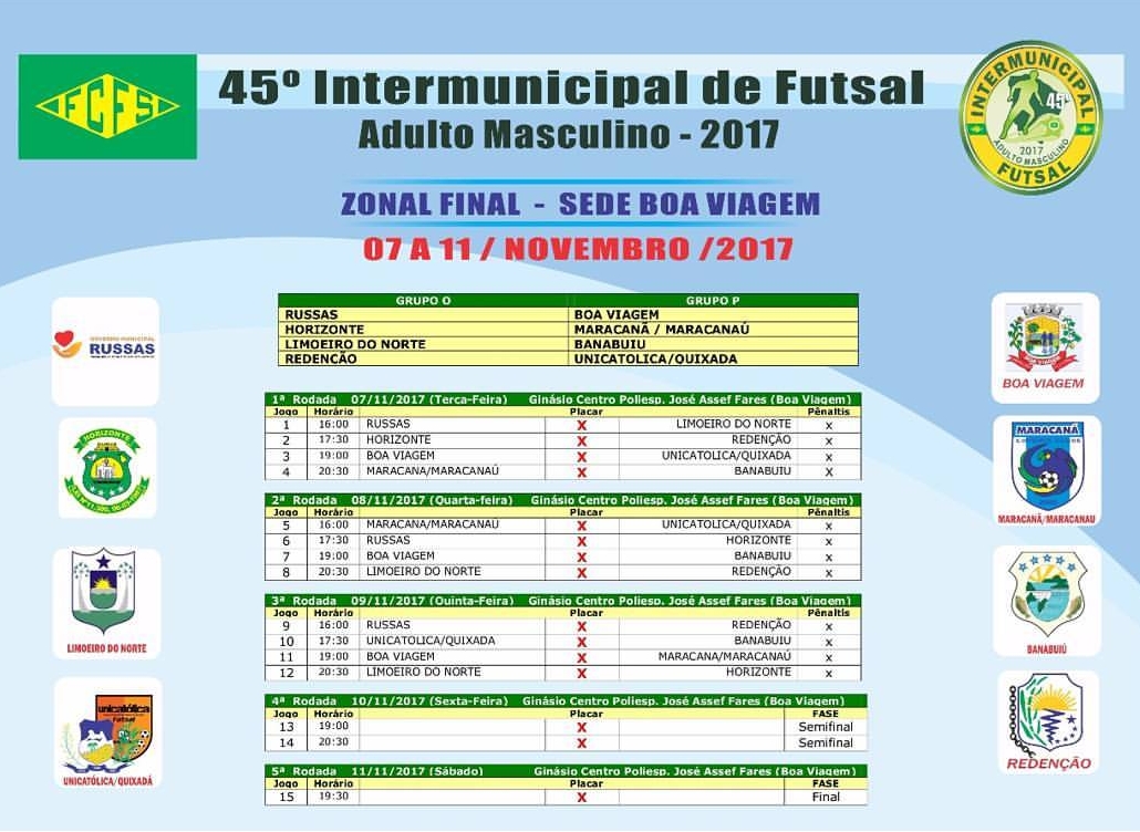 O Maracanã participa da final do Zonal do 45º Intermunicipal de Futsal Adulto Masculino, que teve início nessa terça-feira, 7, e segue até o dia 11 de novembro na cidade de Boa Viagem, a 217 quilômetros de Fortaleza. Neste zonal, oito equipes buscam o título de campeão dividido em dois grupos de quatro. O time maracanauense, formado por atletas prata da casa, busca uma conquista inédita para o futsal do município. Em jogo de estreia, que aconteceu na noite de ontem, 7, às 20:30h, o bicolor metropolitano goleou o Banabuiú por 5 a 2. Nesta quarta-feira, 8, a equipe de Maracanaú vai jogar com a Unicatólica/Quixadá, às 16 horas, no Ginásio Centro Poliesportivo Assef Fares, rua Maria de Nazaré Bezerra, nº 213, Centro de Boa Viagem. (Gean Amorim)