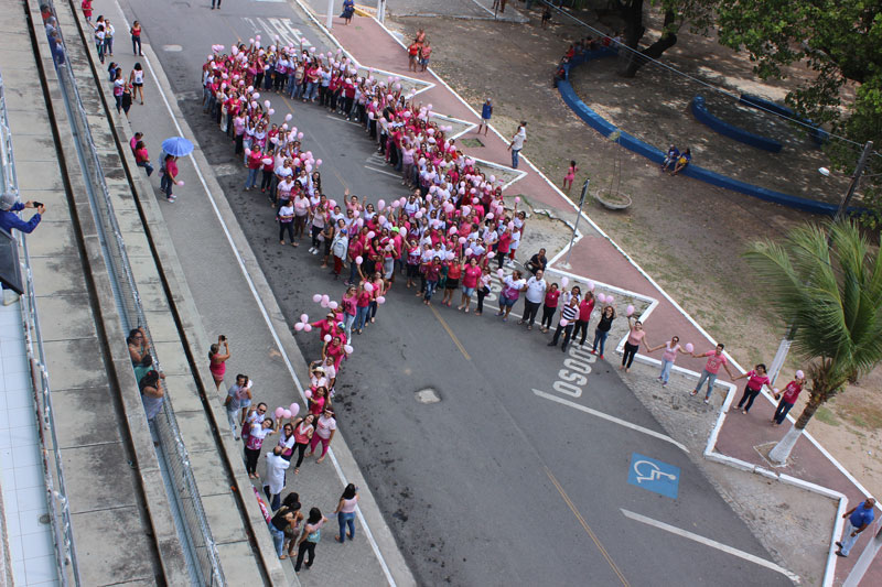 A Prefeitura de Maracanaú, por meio do Hospital Municipal Dr. João Elísio de Holanda e do Hospital da Mulher e da Criança Eneida Soares Pessoa, iniciou na manhã de ontem, 24 de outubro, com a tradicional Caminhada, a campanha Outubro Rosa, que tem como tema “Juntos Na Luta Contra o Câncer de Mama”. A concentração aconteceu em frente à Secretaria da Saúde do Município. Na ocasião, uma educadora física aqueceu os participantes, além da humorista Mulher Bat Gut, que animou todos os presentes. A caminhada percorreu diversas ruas do Jereissati I com destino ao Hospital Municipal, onde foi formado um grande laço humano.