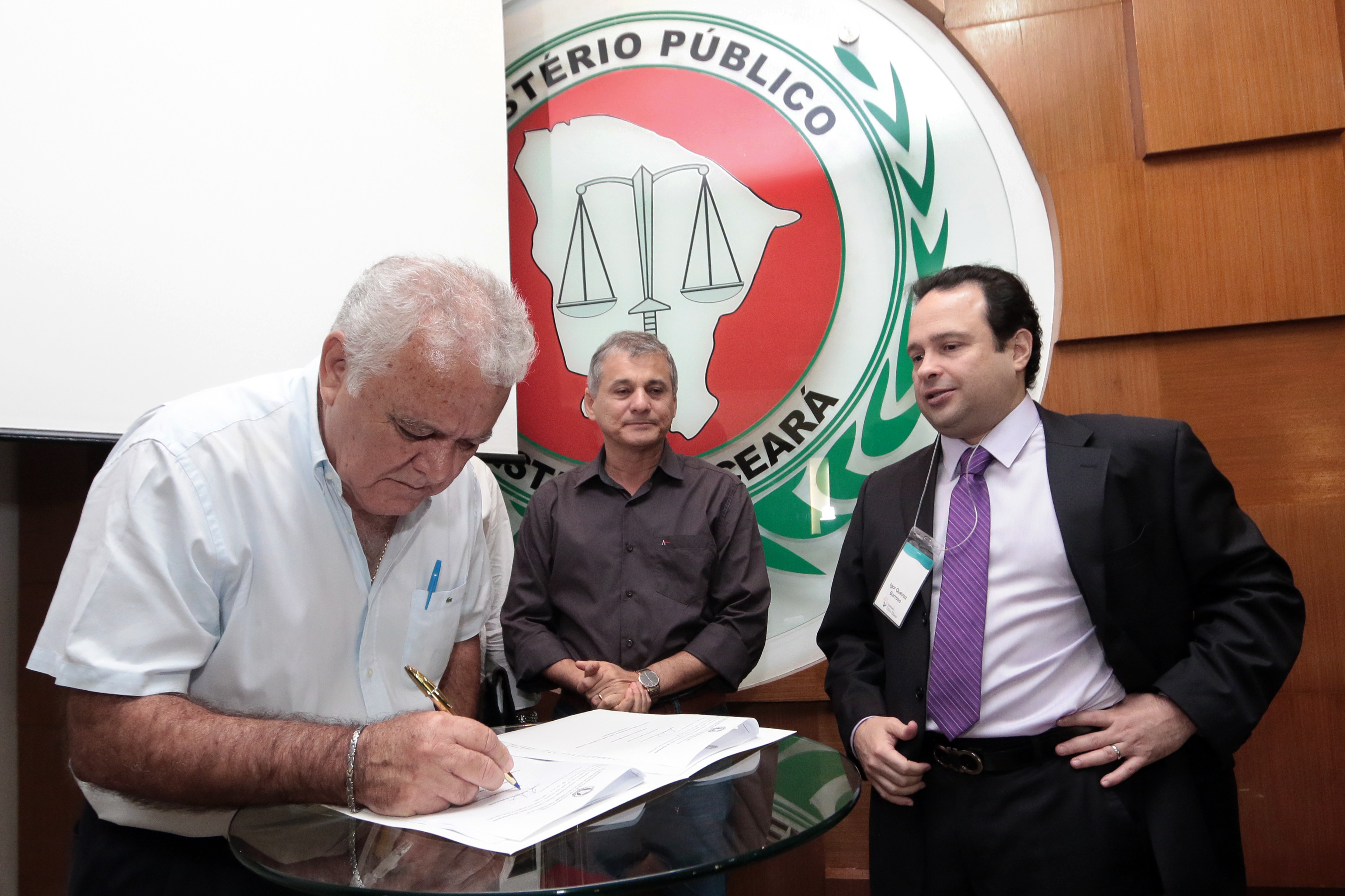 O prefeito de Maracanaú, Firmo Camurça, o secretário de Educação, professor Marcelo Farias, e o promotor da vara da infância, Drº Rubens Machado representantes do Instituto Myra Eliane assinaram o Termo de Ajustamento de Conduta – TAC para o projeto “Valores Humanos na Educação Infantil”, na sede do Ministério Público do Estado do Ceará – MPCE.